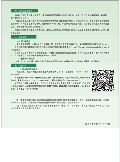 四川农业大学2025年同等学力申请硕士学位招生简章